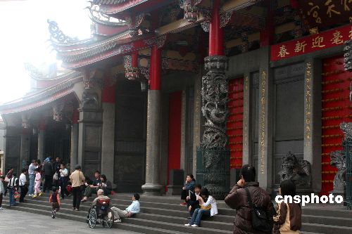 一月十二日是臺(tái)灣第七屆“立委”選舉日,臺(tái)北市較大的四一三號(hào)“立委”選舉投票所就設(shè)在臺(tái)灣非常知名的一所關(guān)帝廟“行天宮”中。圖為排隊(duì)進(jìn)入“行天宮”的民眾,該投票的投票,該拜廟的還拜廟,兩不相干。中新社發(fā) 陳立宇 攝
