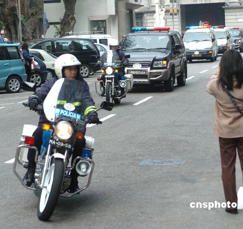 押解歐文龍親屬的囚車(白色)在警察的護(hù)衛(wèi)下駛?cè)氚拈T初級法院。