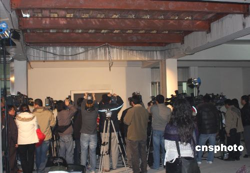 2月13日,臺灣第一個職業(yè)舞團“云門舞集”遭火災后,其創(chuàng)辦人林懷民在臺北借一家加工畫框的車間首次舉行記者會。中新社發(fā) 耿軍 攝