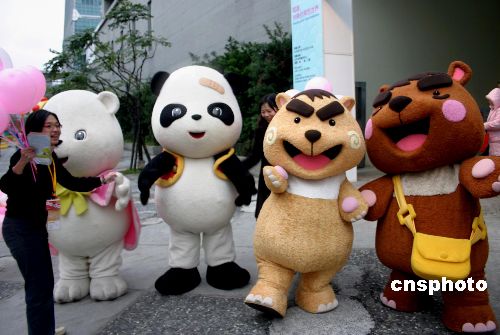 為推銷書展,有業(yè)者在展館門口以道具扮演“熊貓”吸引觀眾。
