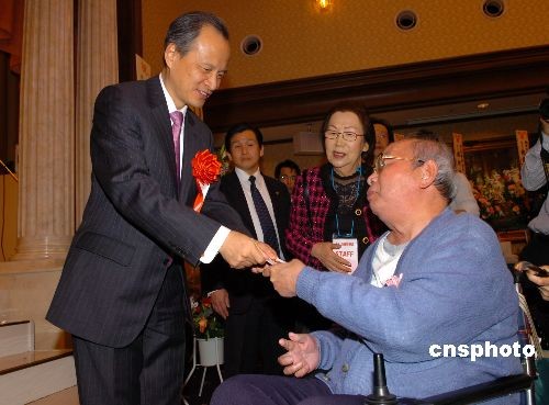 2月27日晚上,日本橫濱華僑總會(huì)舉行“2008新春聯(lián)歡會(huì)”,中國駐日大使崔天凱,日本華僑華人聯(lián)合總會(huì)會(huì)長曾德深、日本中華總商會(huì)會(huì)長黃耀庭、橫濱華僑總會(huì)會(huì)長任政光等出席,來自東京、橫濱地區(qū)的華僑華人近600人參加。圖為聯(lián)歡會(huì)上崔天凱大使按照日本習(xí)慣向老人贈(zèng)送新春“紅包”,祝老人健康長壽。中新社發(fā) 滕劍峰 攝