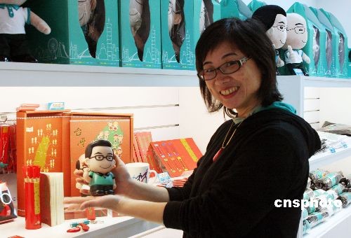 3月10日,有臺北“長仔工坊”業(yè)者展示此次民進(jìn)黨候選人謝長廷、蘇貞昌的創(chuàng)意公仔商品。業(yè)者稱,此番展示的商品,有T恤、手表、文具、飾品、鉛筆、杯墊、鑰匙圈、隨手杯、手機吊飾等,用創(chuàng)意設(shè)計手法,呈現(xiàn)謝、蘇的特質(zhì)、形象,展現(xiàn)臺灣的選舉文化。中新社發(fā) 黃少華 攝