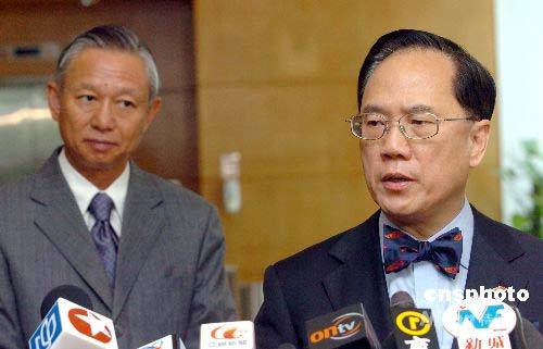 五月十三日,香港特別行政區(qū)行政長官曾蔭權(quán)在香港會見傳媒,慰問四川大地震災民,并表示特區(qū)政府會盡力支援及配合,將兵分三路協(xié)助中央救災。中新社發(fā) 鄧慶樂 攝
