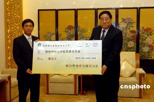 圖:某企業(yè)向四川地震災區(qū)捐款一億港元