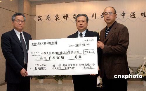 美國亞洲文化傳媒集團向中國地震災區(qū)捐款