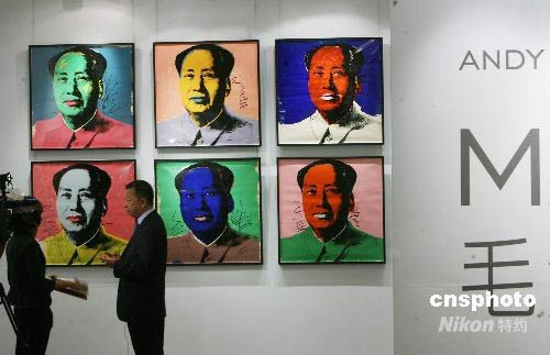 五月二十二日,香港佳士得會展中心展出著名戰(zhàn)后當(dāng)代畫家安迪·沃荷以毛主席為題材的系列作品,這也是該系列作品在亞洲的首次展出。據(jù)悉,展出的十七幅作品總估值十五點六億港元。中新社發(fā) 武仲林 攝