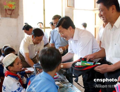 6月11日至12日,國務(wù)院僑辦副主任馬儒沛一行赴國僑辦定點幫扶點積石山縣,視察了定點幫扶項目的進展情況,并看望了積石山縣的部分貧困農(nóng)戶和小學生。13日,馬儒沛向甘肅省政府轉(zhuǎn)交海外僑胞的捐款1000萬元人民幣。中新社發(fā) 牛建業(yè) 攝