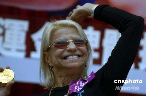 六月二十六日,俄羅斯“體操之母”高拔出席香港記者會(huì)。北京奧運(yùn)日漸臨近,香港多個(gè)商場(chǎng)開展一系列迎奧運(yùn)活動(dòng),這次奧運(yùn)體操四面金牌得主有“體操之母”之稱的高拔(OlgaKorbut)首度率團(tuán)來香港表演。中新社發(fā) 譚達(dá)明 攝