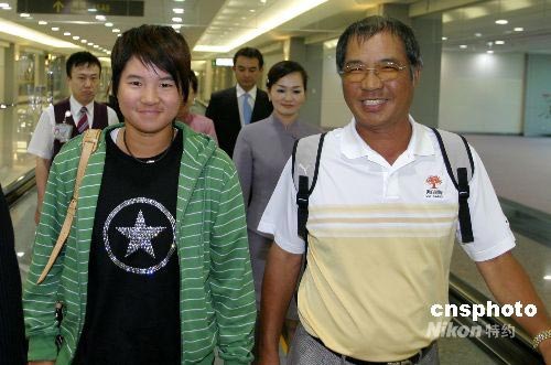 7月1日,贏得高爾夫女子四大賽事冠軍后,十九歲的臺北高爾夫球小將曾雅妮(左)清晨自美國返回臺灣。今年是曾雅妮在女子職業(yè)高爾夫球圈的新秀年,她成為十年來LPGA(美國女子職業(yè)高爾夫巡回賽)首位奪得大滿貫的新人,也是首位贏得大滿貫的華人球員。中新社發(fā) CNA 攝