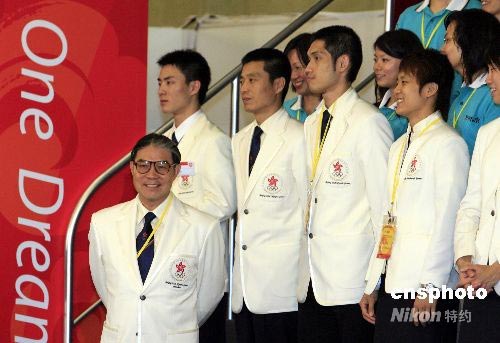 七月六日下午,中國國家副主席習(xí)近平在香港沙田奧運(yùn)馬術(shù)場地接見奧運(yùn)香港運(yùn)動(dòng)員代表和義工,并鼓勵(lì)他們?yōu)閵W運(yùn)出力,為祖國爭光。習(xí)近平副主席的加油打氣后,香港奧委會(huì)會(huì)長霍震霆(左一)及運(yùn)動(dòng)員和義工們個(gè)個(gè)臉上喜氣洋洋,精神倍增。中新社發(fā) 王麗南 攝