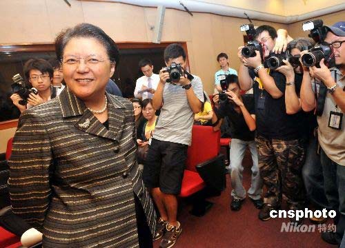 七月十四日,即將卸任的香港立法會主席范徐麗泰,在立法會大樓舉行新聞簡報會,她希望行政立法關(guān)系日后可以做到“互相尊重、以誠待人、一視同仁、合作有望”。并總結(jié)過去十一年出任立法會主席,是她從政生涯中最高峰的時刻,認(rèn)為自己已盡力工作,現(xiàn)時是時候功成身退。中新社發(fā) 鄧慶樂 攝