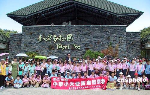 七月十五日,來自北京中關(guān)村第三小學(xué)的近百位“中華小天使”在臺灣展開寶島夏令營行程,創(chuàng)下兩岸兒童交流人數(shù)最多的紀(jì)錄。此次赴臺的小朋友平均年齡在十一歲左右,由十六位老師帶領(lǐng),他們于十四日抵達(dá)臺灣,在臺行程九天八夜。圖為北京小學(xué)生在參觀臺北市立動物園之前合影。中新社發(fā) 徐長安 攝