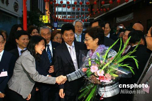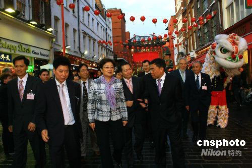 當(dāng)?shù)貢r(shí)間9月12日傍晚,中國(guó)國(guó)務(wù)院僑辦主任李海峰一行在倫敦唐人街參觀訪問(wèn),在華人僑領(lǐng)的陪同下參觀唐人街。中新社發(fā) 李鵬 攝