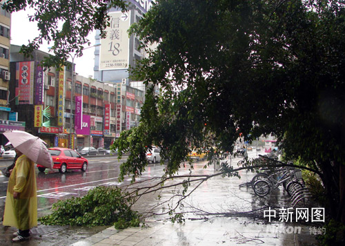 九月十四日,臺(tái)風(fēng)“森拉克”在臺(tái)島徘徊不去,此次臺(tái)風(fēng)風(fēng)大雨量更大,臺(tái)北街頭不時(shí)可見“森拉克”留下的“痕跡”。曾福志 攝