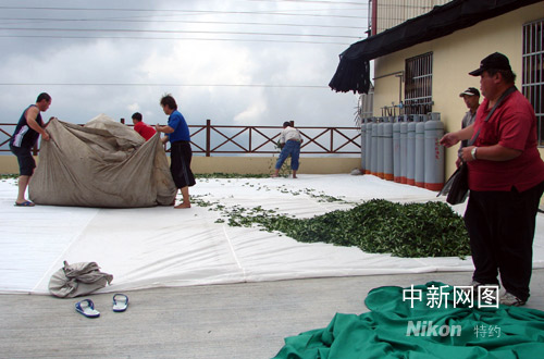 九月十二日“森拉克”臺(tái)風(fēng)即將來臨,臺(tái)灣阿里山上的茶農(nóng)搶時(shí)間晾曬高山茶。曾福志 攝