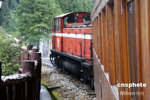 小火車行駛在臺灣阿里山站到神木站的路上,目前,參觀神木為阿里山旅游的一大特色。中新社發(fā) 陳立宇 攝
