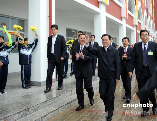 9月24日,賀國強來到固原回民中學(xué)慰問師生。當日,寧夏回族自治區(qū)成立50周年慶;顒又醒氪韴F團長賀國強率一分團到固原市慰問。中新社發(fā) 廖攀 攝