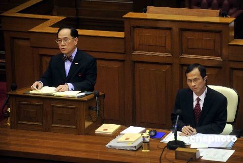 十月十六日,香港行政長(zhǎng)官曾蔭權(quán),下午出席立法會(huì)答問大會(huì),答覆議員向其提出的質(zhì)詢。中新社發(fā) 譚達(dá)明 攝