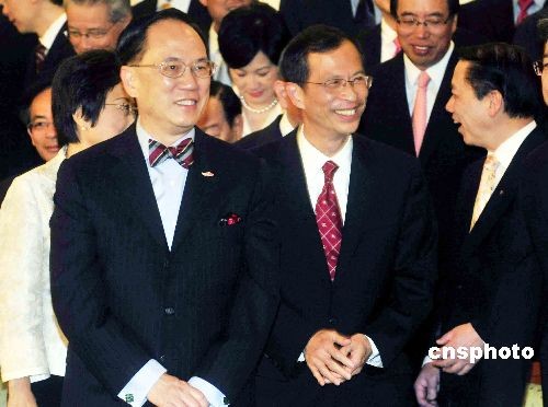 香港特區(qū)行政長(zhǎng)官曾蔭權(quán)與立法會(huì)全體議員在立法會(huì)宴會(huì)廳拍照合照。