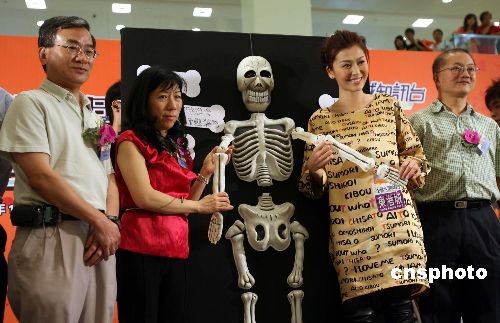 二十六日,香港骨質(zhì)疏松基金會(huì)為響應(yīng)“世界骨質(zhì)疏松日”在將軍澳東港城舉辦名為“全城骨健站起來嘉年華”,透過一系列活動(dòng),提升市民對骨質(zhì)疏松癥的認(rèn)識(shí)及關(guān)注。香港骨質(zhì)疏松基金會(huì)會(huì)長創(chuàng)會(huì)會(huì)長劉明珠醫(yī)生(左二)、麥勤興醫(yī)生(左)及藝人周麗淇(右二)等主持開幕儀式。中新社發(fā) 洪少葵 攝