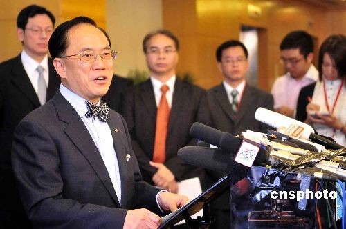 十月二十八日,香港特區(qū)行政長官曾蔭權(quán)在行政會(huì)議后會(huì)見傳媒,宣布委任經(jīng)濟(jì)機(jī)遇委員會(huì)十名成員,由他出任主席,財(cái)政司長曾俊華出任副主席。中新社發(fā) 譚達(dá)明 攝