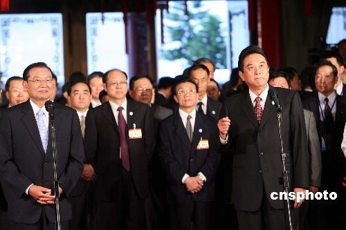 十一月三日,海峽兩岸關(guān)系協(xié)會會長陳云林乘專機抵達臺北,在;鶗麻L江丙坤歡迎下入住圓山飯店。陳云林在飯店發(fā)表抵臺后首次正式談話,陳云林致詞時說,這是他第一次踏上臺灣土地,能夠如此近距離接觸可敬的臺灣鄉(xiāng)親,心情非常激動。 陳云林將在四日上午與江丙坤舉行歷史性的臺北會談及簽署協(xié)定。 中新社發(fā) 洪少葵 攝
