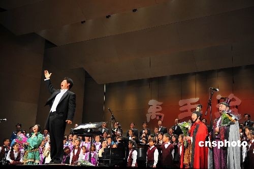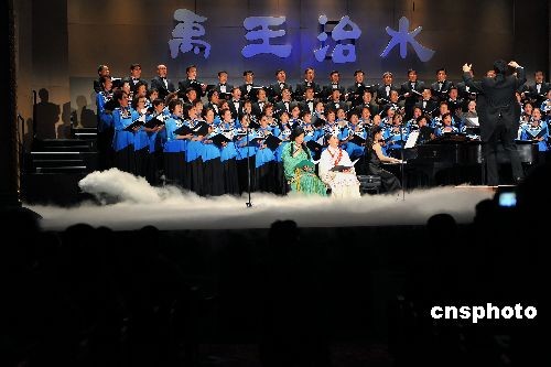當(dāng)?shù)貢r(shí)間11月30日晚,由硅谷華人軟件專家過客(劉力前)作詞、中國著名作曲家鮑元愷作曲的大型合唱組曲《禹王治水》在圣荷西加州劇院舉行首演。匯聚兩岸三地華人華僑歌唱愛好者的清羽合唱團(tuán)和游子吟合唱團(tuán)以及當(dāng)?shù)貎和铣獔F(tuán)共同擔(dān)綱演出。此曲將于明年4月到中國大陸和臺(tái)北巡回演出。《禹王治水》通過歌頌大禹“平水土,立九州”的功業(yè),溫習(xí)中華民族自強(qiáng)不息及堅(jiān)韌不拔的偉大精神傳統(tǒng),回溯中華文明的源頭。中新社發(fā) 陳鋼 攝