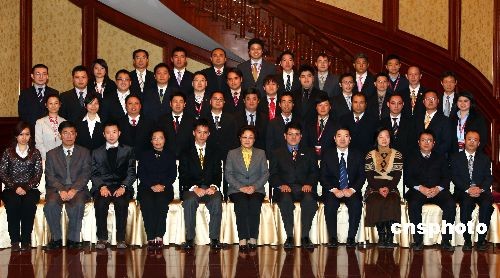 12月1日,國務(wù)院僑辦主任李海峰在北京釣魚臺國賓館會見宴請了第六期華裔新生代企業(yè)家中國經(jīng)濟高級研修班的全體學員,并合影留念。李海峰指出,中國正處于改革和發(fā)展的關(guān)鍵階段,也處于工業(yè)化、現(xiàn)代化的重要時期。當前經(jīng)濟發(fā)展中遇到的很多新情況、新問題,需要我們依靠科技進步、提高領(lǐng)導(dǎo)者素質(zhì)、創(chuàng)新管理來解決,需要我們在發(fā)展中來解決。這將為海外僑胞參加中國經(jīng)濟發(fā)展,分享中國機遇創(chuàng)造更加有利的條件和機會。中新社發(fā) 杜洋 攝
