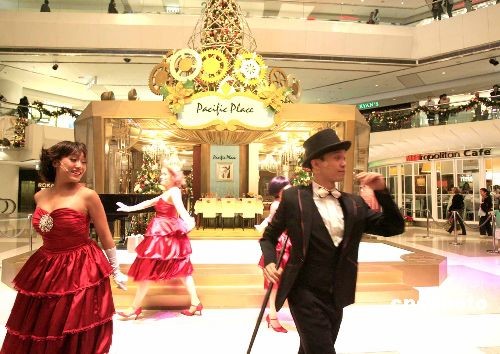 十二月十六日,香港太古廣場上演別開生面的百老匯式歌舞表演,營造圣誕節(jié)氣氛。中新社發(fā) 張勤 攝
