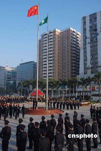 12月20日8時(shí),澳門特區(qū)政府在金蓮花廣場舉行隆重的升旗儀式,慶祝澳門回歸祖國9周年。中新社發(fā) 畢永光 攝