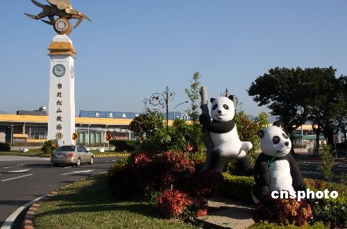 圖:大熊貓塑像出現(xiàn)在臺(tái)北松山機(jī)場(chǎng)