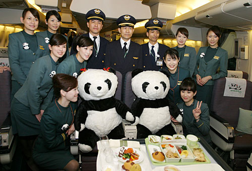 臺灣長榮航空22日派出波音客貨機與經(jīng)驗豐富的機組員,啟程前往四川接回2只大熊貓。(“中央社”圖)