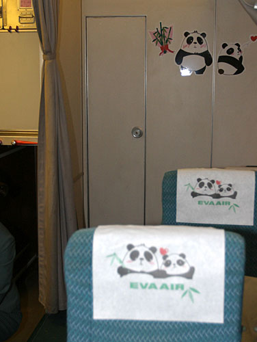 長榮航空22日派出波音客貨機(jī)準(zhǔn)備接回大陸贈(zèng)送的2只大熊貓,飼養(yǎng)員可以經(jīng)由照片中的小門,由客艙進(jìn)入貨艙了解熊貓?jiān)谶\(yùn)送途中的情況。(“中央社”圖)