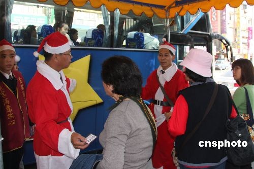 圖:臺北公交車服務(wù)員也扮圣誕老人