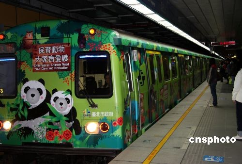 12月26日,臺北市啟動大熊貓彩繪車穿梭于市內(nèi)捷運中,臺灣熊貓熱進一步升溫。中新社發(fā) 陳立宇 攝