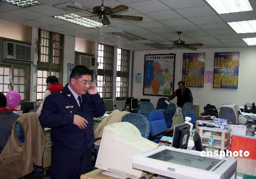 南京靈谷寺赴臺參訪團(tuán)一行六人,一月十二日應(yīng)臺北市凈土宗善導(dǎo)寺邀請到臺進(jìn)行宗教交流。十四日上午七時許,靈谷寺住持凈然法師被發(fā)現(xiàn)陳尸于入住酒店的房間床上,同住一室的靈谷寺監(jiān)院純?nèi)绶◣焺t墜樓身亡。事件發(fā)生地轄區(qū)臺灣新竹市警察局第三分局分局長黃炳訓(xùn),十五日接受中新社記者訪問時介紹,初步勘驗結(jié)果,警方研判兩名法師的死亡之間有關(guān)聯(lián)性。但須由警務(wù)主管部門的刑偵局對相關(guān)物證進(jìn)行權(quán)威檢驗和比對后,才能有最終結(jié)論。黃炳訓(xùn)十七日接受記者訪問時說,警方十六日下午又取得在死者房間獲得的若干新物證,會送上級刑偵部門進(jìn)行比對。預(yù)定十九日解剖死者的尸體,進(jìn)一步理清案情。目前正等待鑒識結(jié)果和最終報告的完成。圖為新竹市警察局第三分局刑偵室,打電話者為黃炳訓(xùn)。中新社發(fā) 陳立宇 攝