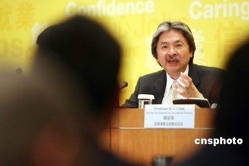 二月二十五日,香港財(cái)政司司長(zhǎng)曾俊華出席財(cái)政預(yù)算案記者會(huì)時(shí)表示,深切明白市民面對(duì)的困境和憂慮,在經(jīng)濟(jì)低迷的情況下,如何恢復(fù)市民對(duì)前景的信心是重要環(huán)節(jié)。中新社發(fā) 洪少葵 攝