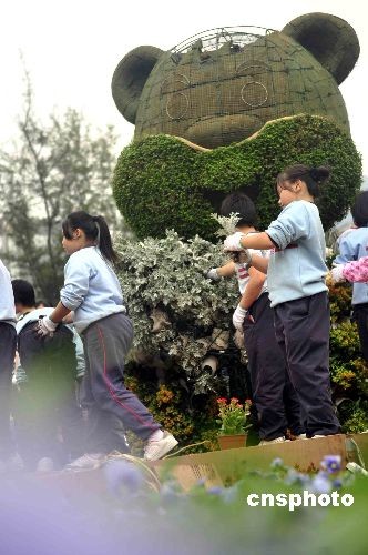 二月二十八日,來自二十間學(xué)校的五百多名學(xué)生,在香港維園協(xié)助鑲嵌大型花壇“森林運(yùn)動(dòng)會(huì)”花壇。據(jù)悉,今屆花卉展覽展出逾二百個(gè)來自香港、內(nèi)地及世界各地參展機(jī)構(gòu)的花卉,以及造型獨(dú)特的園林景點(diǎn)及花藝擺設(shè),色彩絢麗,形態(tài)各異。中新社發(fā) 譚達(dá)明 攝
