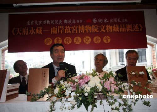 北京故宮博物院院長鄭欣淼的新作《天府永藏——兩岸故宮博物院文物藏品概述》已由臺灣藝術(shù)家出版社出版。圖為3月3日下午,藝術(shù)家出版社主辦的新書發(fā)表會記者會(右三為鄭欣淼)。中新社發(fā) 陳立宇 攝