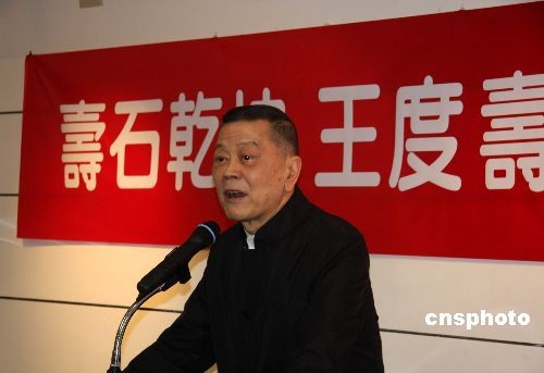 3月14日,壽石乾坤——王度壽山石雕珍藏展開幕式在臺灣“國父紀念館”舉行,圖為臺灣著名收藏家王度在開幕式上致辭。此次展覽共展出王度收藏的壽山石雕刻精品200多方。中新社發(fā) 陳立宇 攝