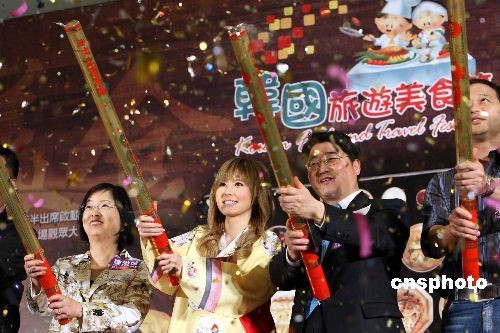 三月二十一日,由韓國觀光公社主辦的“韓國旅游美食節(jié)”在香港東港城舉行。人氣歌手傅穎穿著韓服參與主持啟動儀式,并演唱新歌。中新社發(fā) 洪少葵 攝
