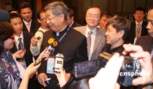 原全國(guó)人大常委會(huì)副委員長(zhǎng)許嘉璐3月21日下午抵達(dá)臺(tái)北,出席“第三屆海峽兩岸客家高峰論壇”。許嘉璐此次訪問(wèn)臺(tái)灣是以葉圣陶研究會(huì)名譽(yù)會(huì)長(zhǎng)的身份。圖為許嘉璐在論壇上受到大批記者和客家鄉(xiāng)親包圍。中新社發(fā) 耿軍 攝