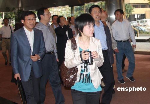 三月二十五日,由十七家大陸中央媒體負責人組成的訪問團拜訪臺灣《聯(lián)合報》。圖為訪問團步入《聯(lián)合報》報社大樓。中新社發(fā) 耿軍 攝