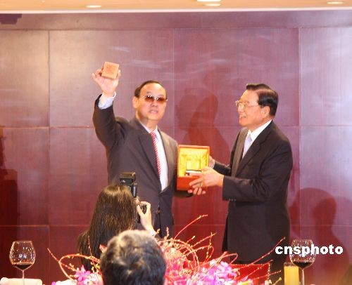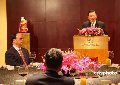 大陸海協(xié)會(huì)副會(huì)長(zhǎng)安民四月六日率“海協(xié)會(huì)經(jīng)貿(mào)交流考察團(tuán)”一行十四人抵達(dá)臺(tái)灣,開(kāi)始為期七天的訪問(wèn)。臺(tái)灣;鶗(huì)董事長(zhǎng)江丙坤在香格里拉臺(tái)北遠(yuǎn)東國(guó)際大飯店宴請(qǐng)安民一行。 中新社發(fā) 耿軍 攝