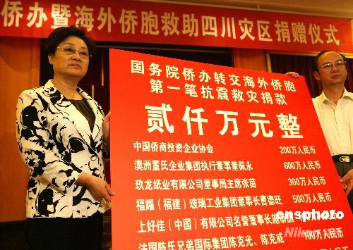 國僑辦向汶川地震災區(qū)轉(zhuǎn)交海外僑胞首批捐款