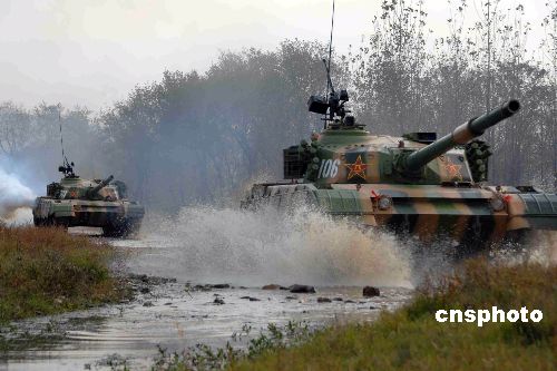 10月底,“鐵拳-2007”復(fù)雜電磁環(huán)境下機(jī)步師實(shí)兵檢驗(yàn)性演習(xí)完成電磁對抗,進(jìn)入實(shí)兵交戰(zhàn)階段。圖為裝甲部隊(duì)向演習(xí)地域集結(jié)。中新社發(fā) 周和平 攝