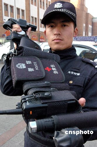 日前,烏魯木齊公安局特警支隊(duì)隊(duì)員身著最新警用裝備在該市國際大巴扎執(zhí)行巡邏任務(wù)。據(jù)了解,此次該市特警統(tǒng)一更換的新裝備中包括強(qiáng)光手電、催淚噴射器、手銬、伸縮警棍、水壺、對講機(jī)、警察工作包、急救包等,所有器具均掛在多功能腰帶上,使用起來更加便捷。新裝備中的急救包中所攜帶的治療高血壓及心臟病的急救用藥和包扎器具即可以應(yīng)對突發(fā)事件中的急救所用,還可以對巡邏過程中市民的突發(fā)病癥做暫時(shí)的急救之用。中新社發(fā) 劉新 攝
