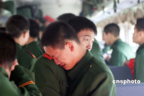 11月26日中午,駐守在中朝邊境100多名四川籍邊防退伍老兵返鄉(xiāng)。中新社發(fā) 陳浩浩 攝