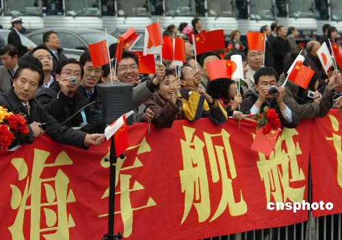 11月28日上午10點,中國海軍導(dǎo)彈驅(qū)逐艦“深圳”號抵達日本東京晴海碼頭開始對日本進行正式友好訪問,日方舉行了盛大的歡迎儀式。中新社發(fā) 滕劍峰 攝