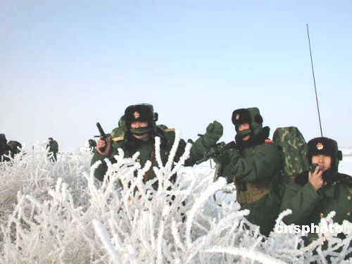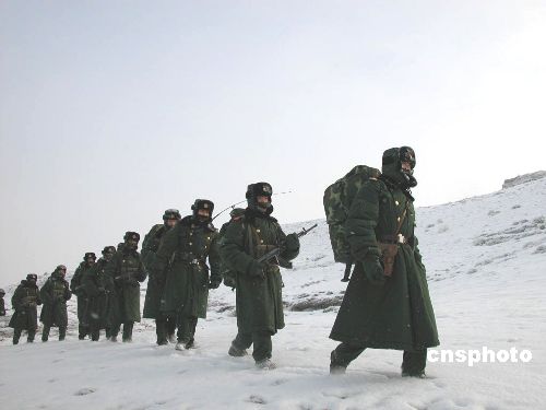 12月份以來(lái),新疆阿拉套山山脈普降大雪,駐守在這里的武警新疆邊防某部把部隊(duì)拉進(jìn)復(fù)雜地域開(kāi)展冬季練兵。中新社發(fā) 王考華 攝